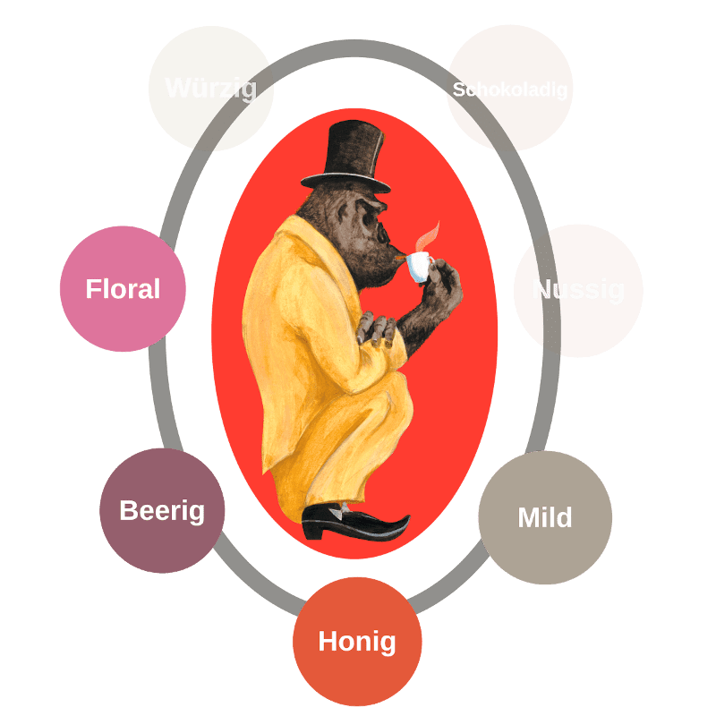 Très élégant et décontracté, c'est ainsi que l'animal iconique déguste sa tasse. Le gorille incarne la force et le plaisir, le lien avec la nature et la tranquillité. Pas étonnant que Kaffee Joerges en ait fait son homonyme et sa figure emblématique. Ils ont lancé la marque de café Gorilla en 2004.